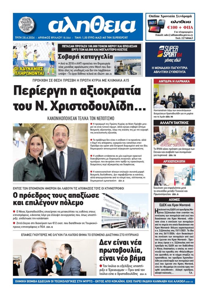 Αρχιεπισκόπου Κυπριανού 5, Λατσιά 2235 Ταχ. Θυριδα 21695, 1512 Λευκωσία ΣΥΝΤΑΞΗ Τηλ. 22-471353 e-mail: news@alfamedia.press.cy